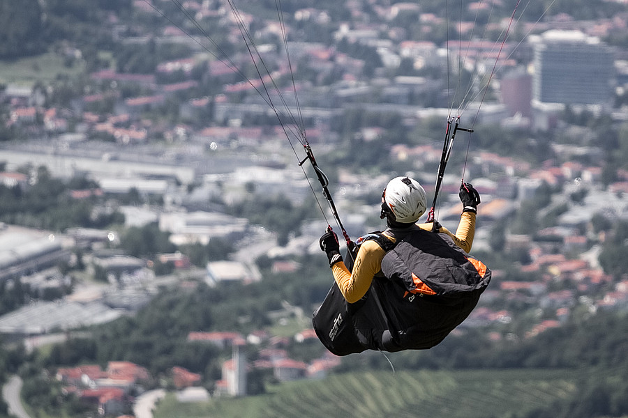 Einmal tief und man ging landen. Letztlich flog ich im Führungspulk zur vorletzten Wende über Nova Gorizia. Alles im Schatten versuchten wir uns nochmals kurz am Startplatz einzuparken und waren uns dann einig, dass Ausgleiten das sinnvollste sein schien. Beim Einarken hätten wir uns Stück für Stück tiefer gebastelt. Erst als ein Umdrehen nicht mehr Möglich war kam wieder unerwartet Sonne an die Kante und die deutlich später kommenden Verfolger konnten über dem Startplatz nochmals ausreichend Höhe machen. Wenige kamen heute weit.