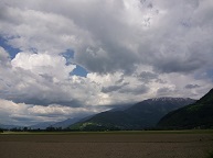 9:00 Uhr Die Gipfel sind mit weißen Wölckchen eingehüllt. Heute soll es noch ein wenig feuchter werden und früher regnen.