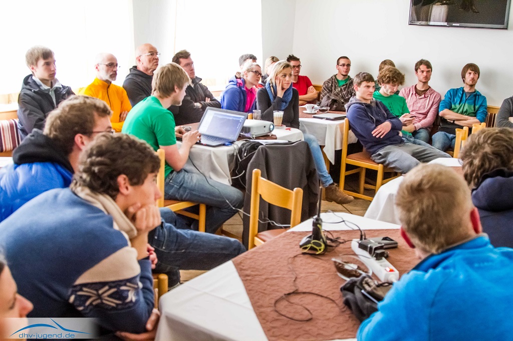 Heute gab es noch ein sehr ausführliches Debriefing im trockenen. Neben dem gestrigen Task gab es taktische Tipps zum Startzylinder, dem Beschleunigten Fliegen und dem Scoring Prozess.