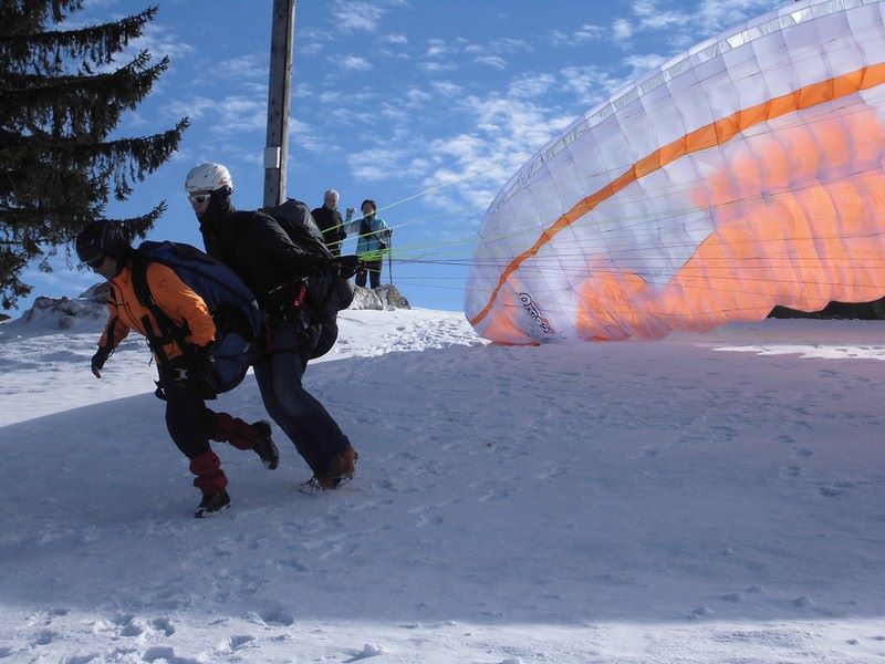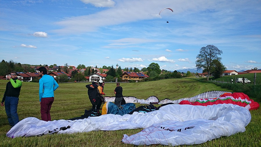 Mit fast Dauerregen starteten wir zur Fahrt ins 50 min entfernte Fluggebiet am Alpenrand wieder zum Lijak. Vor Ort wurde das Wetter kontinuierlich besser und zum Start ging es mit kräftigen Bärten in der Sonne rauf.