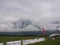 Pünktlich zum Race Beginn kamen vom gegenüber liegenden Berg Regenschauern auf uns zu. Ein Schauer schaffte es bis zu uns an den Hang. Zu diesem Zeitpunkt