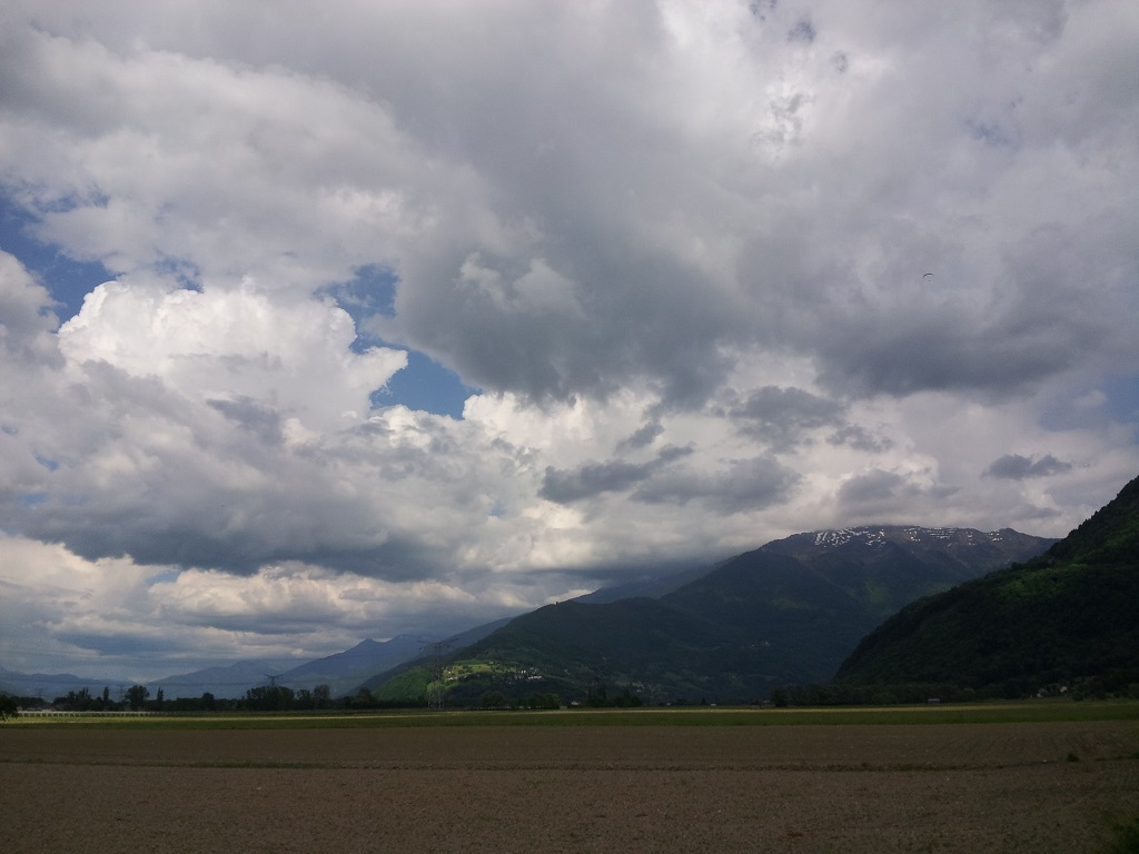 18:00 Uhr Wieder kurz gestanden. Die Piloten splitteten sich heute in zwei Pulks. Meiner war einen Tick langsamer. Zum Ende hin regnete es ein wenig und beim trocken Fliegen spülte es mich 10km vor dem Ziel, vollends ins Tal.